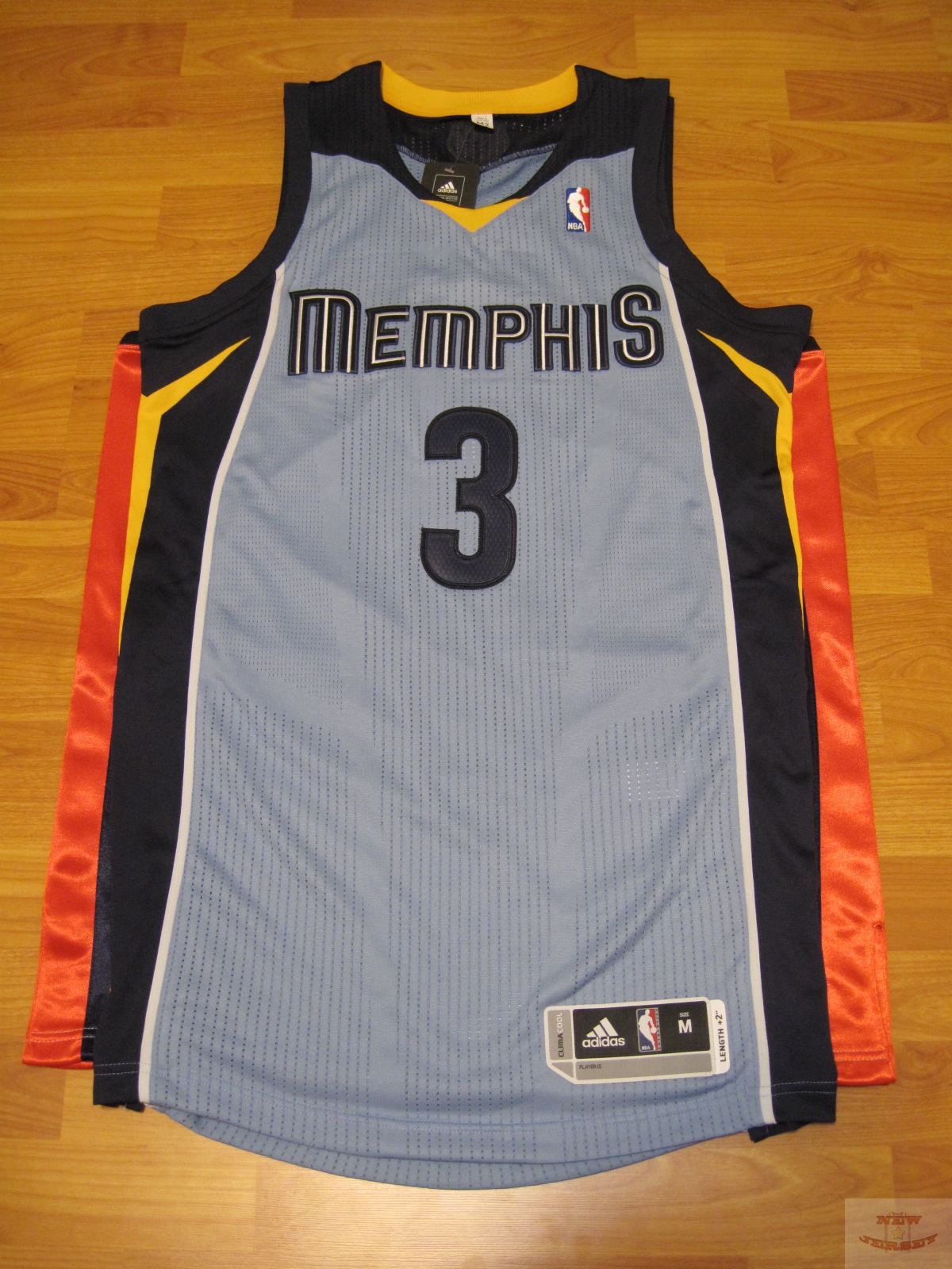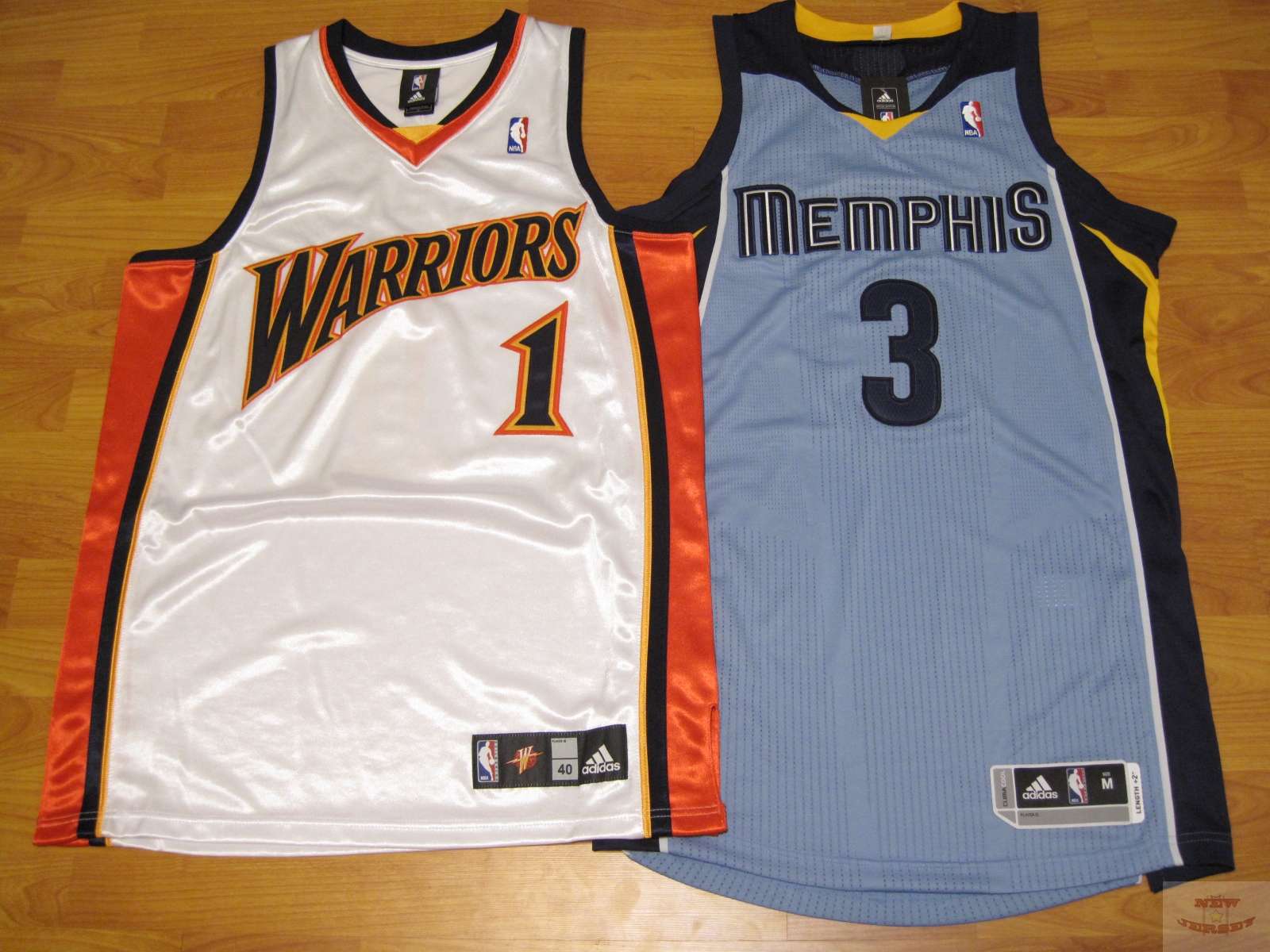 這邊實際丈量後的長寬數據是...長約88cm(肩膀最高處量至下襬最低處),寬約54cm。寬度上和Swingman的S號一樣。接著將它和以前舊版的adidas Authentic球衣擺在一起作比較...