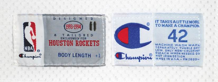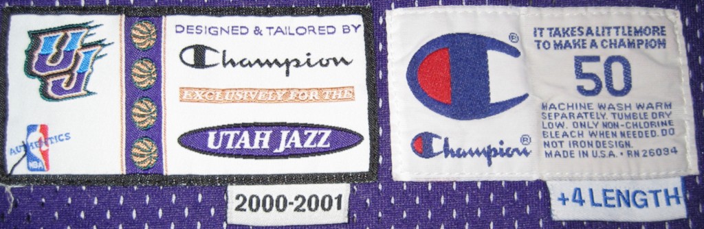 Champion的球衣是在球衣細節上最不一致的廠牌,從約90年開始代理生產NBA球衣,一直到2000年初期約莫十年的時間,可說是年年都有不同的地方,光同尺寸就會依生產時代不同而產生差異,另外像是下標(尺寸標)的縫製法或是領標的有無都不太一樣。